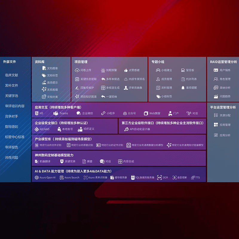 医疗器械产品上市前,,要熟悉严格与繁复评审标准,,,,整理分析监管机构指导文件中的海量信息。。。。企业急需一个智能化解决方案,,,,提升知识管理效率,,,,提高评审通过率,,以提升其市场竞争力。。。