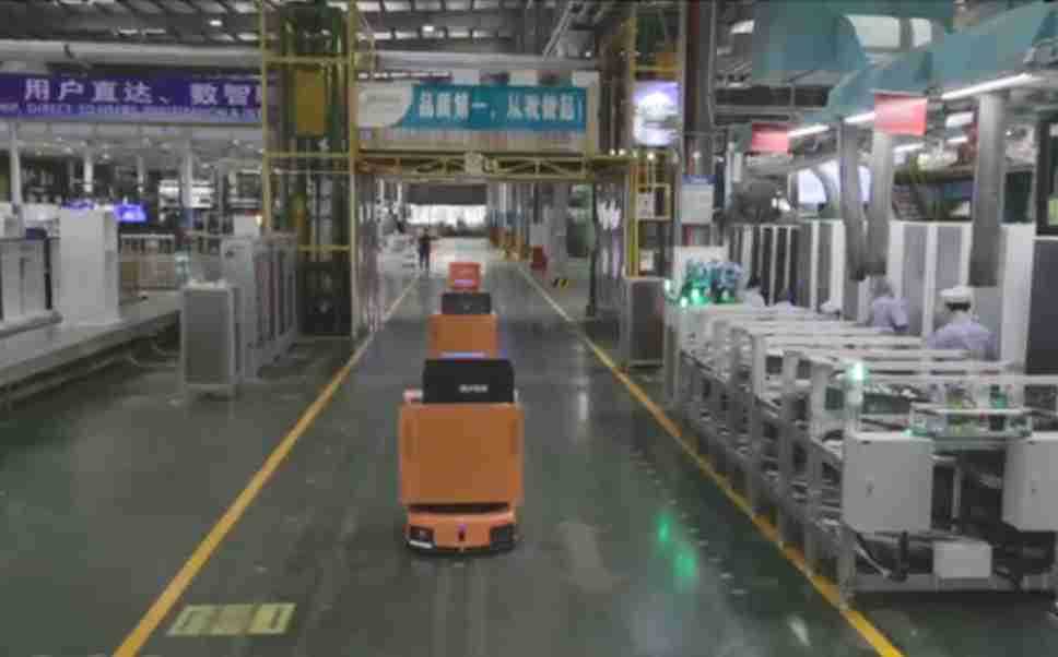 为车载冰箱物流配送打造的智能解决方案,,包含产中物流通过潜伏举升AMR搬运至线边,,,产后成品物流智能仓储,,流程包含产中物流智能齐套入库,,线边安灯叫料AMR智能配送至线边,,,成品入库、、、、出库,,,,通过无人堆高车机器人,,智能仓储管理替代人工作业管理,,,实现更高存储、、更高效率、、更具柔性化的解决方案。。。